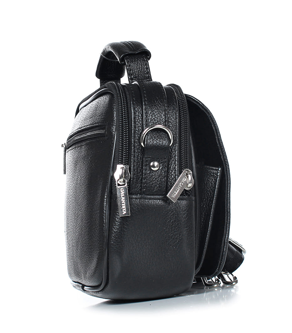 Сумка из натуральной кожи, на два отделения, закрывающиеся на застежку-молнию, с одной короткой ручкой, с регулирующимся по длине ручкой-ремнем, на задней стенке карман, закрывающийся на застежку-молнию, с объемным карманом на передней стенке, закрывающимся клапаном на з/магнитку и карманом на клапане, закрывающимся на застежку-молнию. Сумка на подкладке.