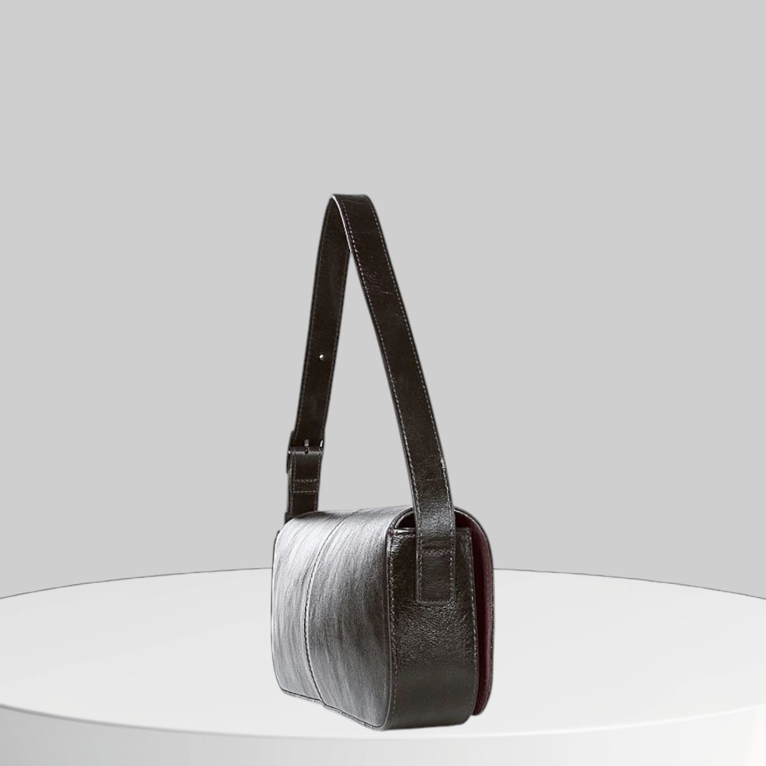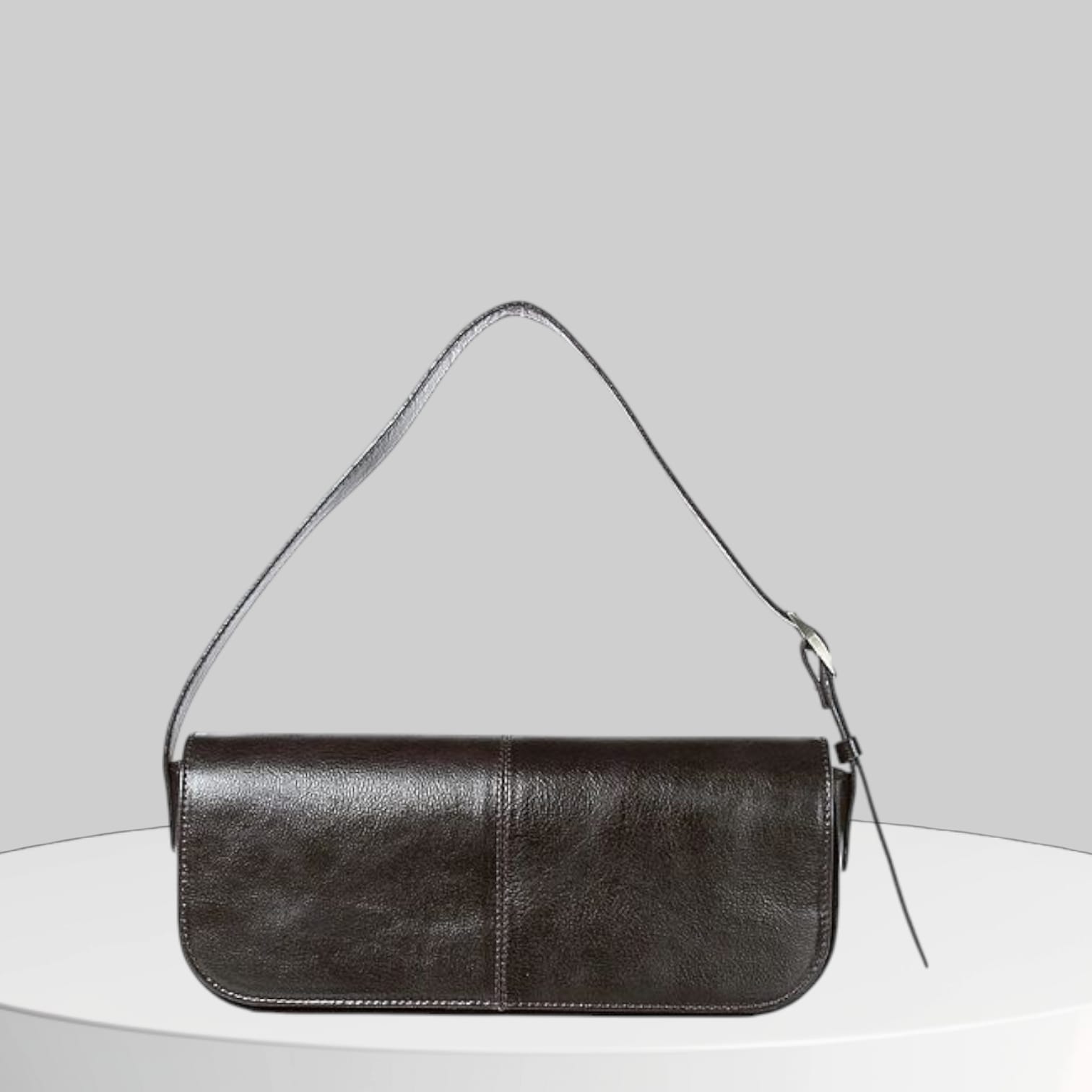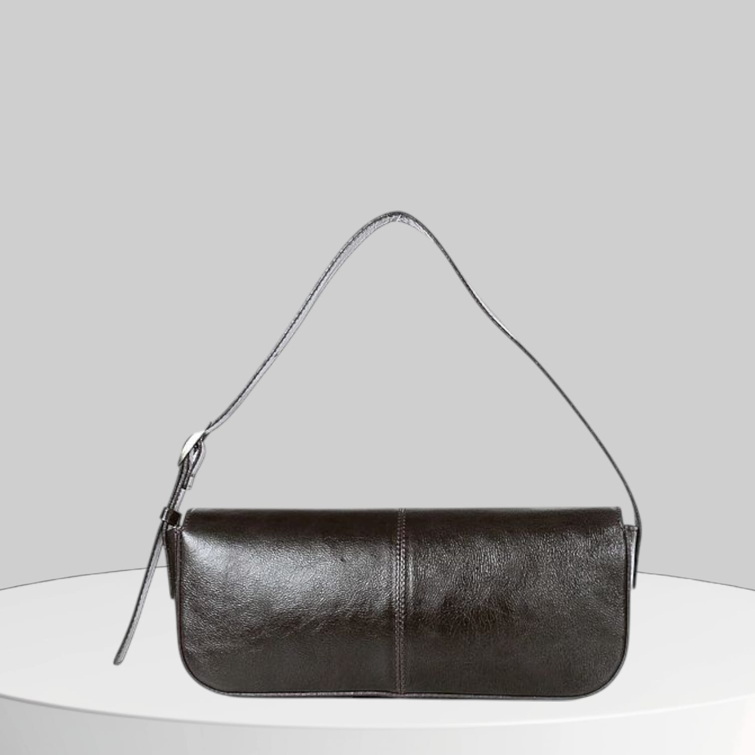 Сумка-багет из натуральной кожи отлично дополнит ваш образ.