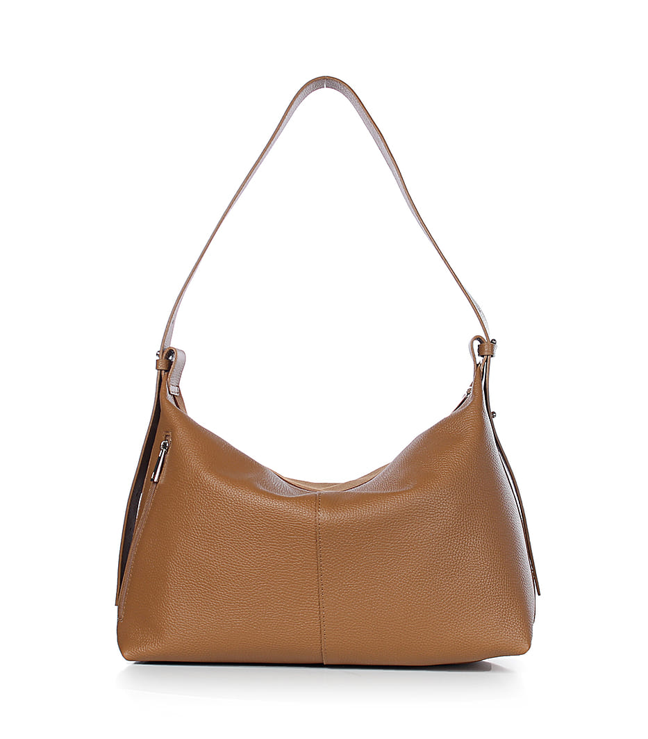 Вместительная, мягкая, трапецевидная сумка.