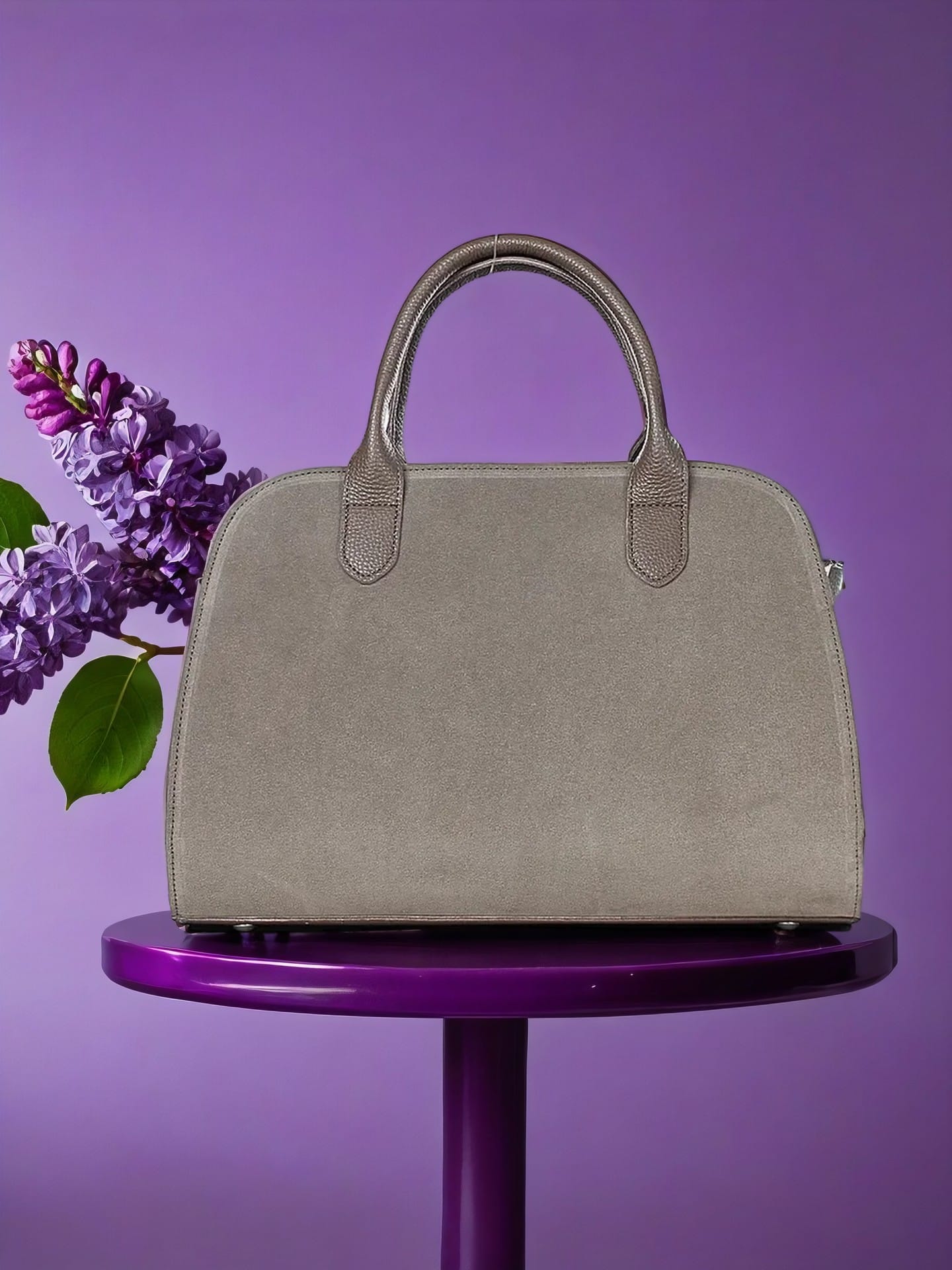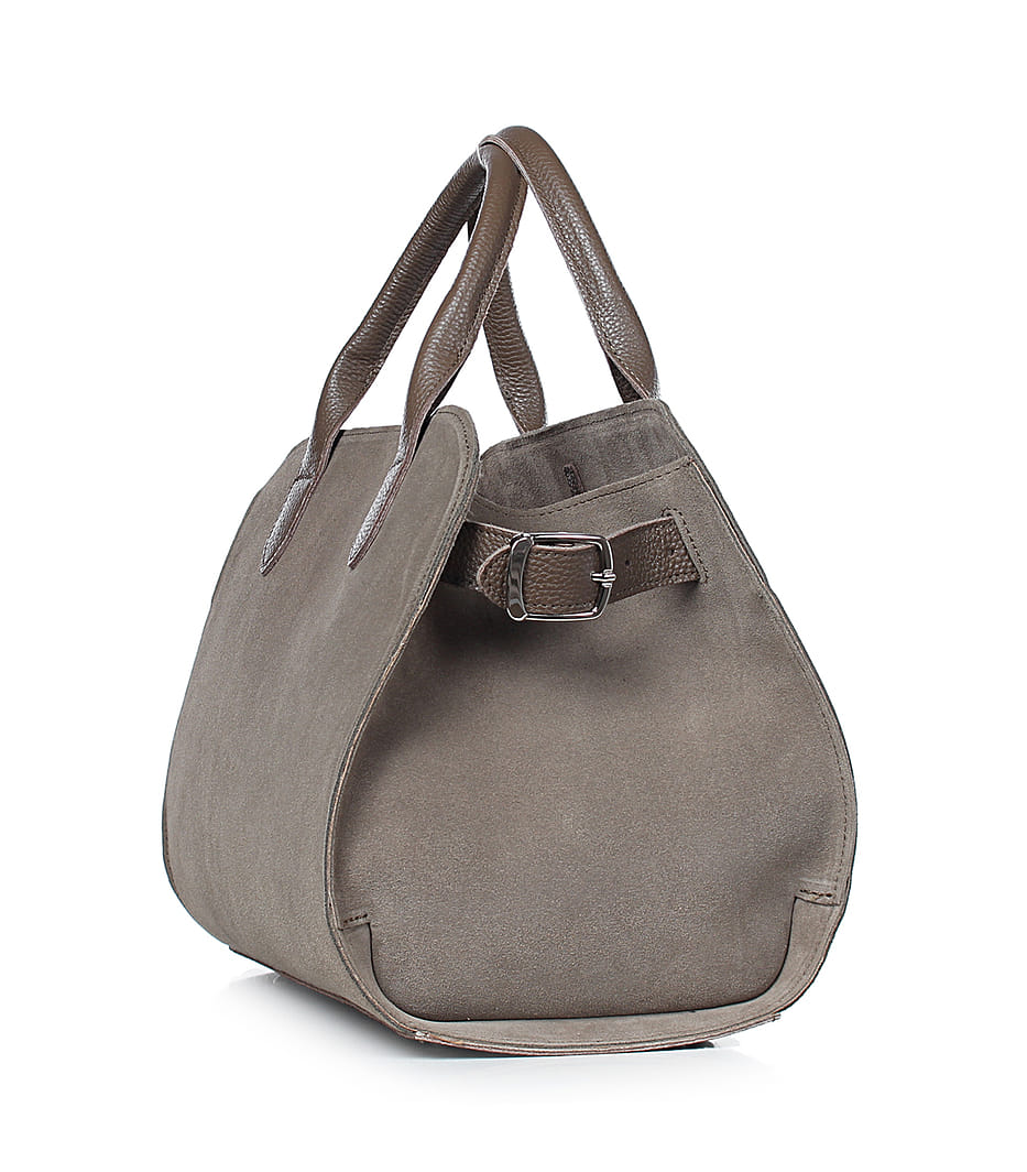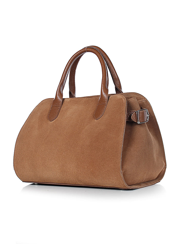 Модная женская сумка среднего размера выполнена из велюра в сочетании с однотонной кожей. Удобная и вместе с тем вместительная.