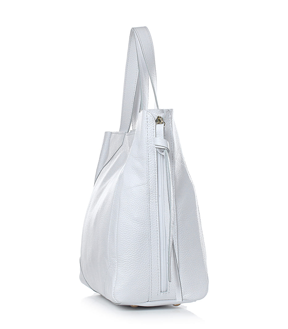 Сумка-тоут из натуральной кожи. Сумка закрывается на замок. Внутри боковой карман на молнии.
